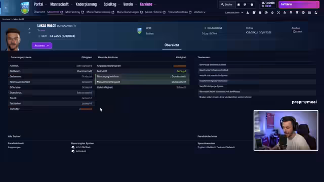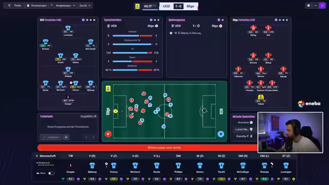 01:09:12Nachdem Miro, der bisherige Platz 10-Trainer zu Düsseldorf wechselte, folgt Kaspar Hülmand als neuer Coach. Eine zentrale Entscheidung betrifft den eigenen Verein: Der monatlich kündbare Vertrag bei UCD Dublin wird zunächst aufrechterhalten. Bis Silvester wird nach attraktiveren Angeboten bei anderen Vereinen gesucht. Falls kein besseres Angebot vorliegt, wird der Vertrag bei UCD verlängert, als das sinnvollste Vorgehen. Die Möglichkeit, schnellstmöglich den Trainerschein zu machen, ist dabei ein wichtiges Kriterium.