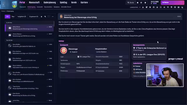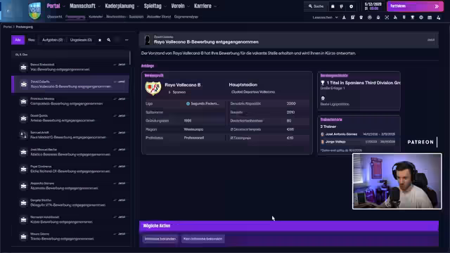 00:38:01Zurück im Thema Fußball-Manager wird der Prozess der Entscheidungsfindung detailliert beschrieben. Da der aktuelle Vertrag monatlich kündbar ist, werden weltweit Trainerstellen gesucht und abgelehnt, insbesondere semi-professionelle Vereine und deutsche Vereine. Gleichzeitig werden die Vorteile eines Verbleibs beim aktuellen, erfolgreichen Verein gewogen. Der Streamer kündigt an, das Thema weiter zu beobachten und eine Entscheidung zu treffen.