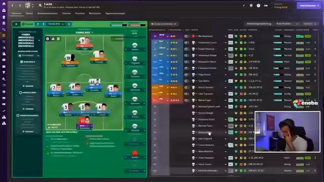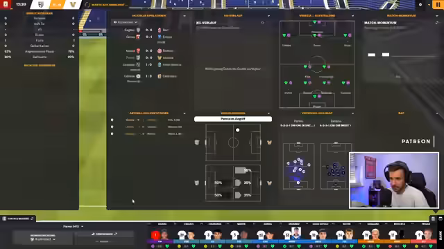 02:10:24Während eines Testspiels beobachtet der Streamer genau die Aufstellungen und Bewegungen seiner Spieler. Er analysiert speziell den Spielaufbau und die Verteidigungsorganisation, besonders die Positionierung seines Libero. Es werden verschiedene taktische Aspekte wie Pressing, Flanken und das Verhalten in Spielsituationen diskutiert. Der Streamer versucht, durch kleine Anpassungen die Effektivität seiner Mannschaft zu verbessern und passt die Rollen der Spieler entsprechend an.