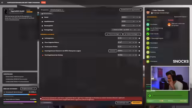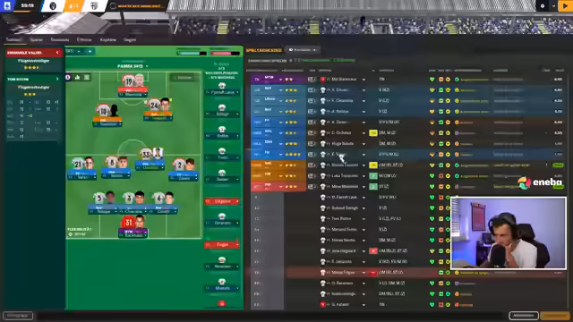 00:43:20Der Streamer beginnt mit den Planungen für die kommende Saison mit Parma Calcio. Er berichtet über die bereits getätigten Transfers, darunter die Verpflichtung von Backhaus, Fraulo, Kimlein, Rote und Hekimoglu für insgesamt 6,3 Millionen Euro. Gleichzeitig wurde der wichtige Spieler Bernabe für 17 Millionen Euro verkauft, was eine Lücke im Kader hinterlässt, die nun geschlossen werden muss.