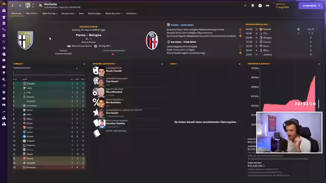 04:50:04Parma Calcio 1913 startete in die neue Saison mit einem Auswärtsspiel gegen Pisa Calcio. Der Streamer zeigte sich gespannt auf den Gegner und erwähnte, dass 35 Millionen Euro ausgegeben worden seien. Gleichzeitig wurde betont, dass auch viel eingenommen wurde. Das Budget sei knapp, aber die Mannschaft sei stark aufgestellt. Der Vorstand genehmigte jedoch keine negativen Zahlen. Der Streamer erwähnte den SV Eilendorf und versicherte, dass der Papa das regeln werde. Das Spiel gegen Pisa wurde angekündigt.