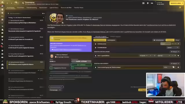 02:52:55Die Transferaktivitäten gehen weiter. Hull City bietet 27 Millionen für einen Spieler, was angenommen wird. Inter Mailand bietet 40 Millionen für einen anderen Spieler. Auch Leicester City macht ein Angebot, das jedoch aufgrund mangelnder Gegenleistung abgelehnt wird. Der Streamer verkauft erfolgreich Spieler und erzielt dabei hohe Gewinne.