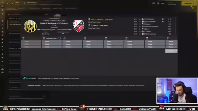 00:16:56Der Streamer kündigt den ersten Neuzugang im FCN-Save an und bittet seine Zuschauer um Ideen für den Save. Er redet über persönliche Themen, wie sein PUBG-Spielen, wobei er ohne Kill in die Top 50 kam. Eine wichtige Rolle spielen die regelmäßigen Wetten mit den Chat-Usern, insbesondere die Wette, wer näher am xG-Wert war. Der Streamer vergleicht den xG-Wert Roda Kerkrades mit dem des Gegners und kommt zu einem klaren Ergebnis. Er erwähnt auch eine Wette mit einem User über das nächste Spiel.