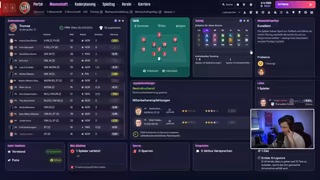 02:00:06Der Stream dreht sich um den Start der vierten Saison im Save. Das Team ist optimal aufgestellt und das erste Ligaspiel gegen Frederikstad steht bevor. Der Streamer gibt Einblicke in seine Taktikphilosophie, erklärt die Bedeutung von Attributen im Vergleich zu Sternenbewertungen und zeigt die Startaufstellung. Das Auftaktspiel wird als entscheidend für das Saisonziel angesehen, in der man sich als Dritte der Vorjahres saison weiter verbessern möchte.