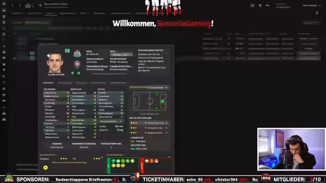 00:19:30Der Streamer wendet sich dem Football Manager zu und gibt einen Überblick über die letzten Transfers und Finanzen des Vereins. In den letzten zwei Jahren wurden Abgänge im Wert von 134 Millionen Euro verzeichnet, im Vergleich zu 504 Millionen in der vorherigen Saison, was zu einem Umsatz von 638 Millionen führte. Das Hauptziel ist der Champions-League-Sieg. Aktuell gibt es Probleme auf der Torwartposition, weshalb ein neuer Torwart gesucht wird. Außerdem fehlt ein Linksverteidiger und ein zusätzlicher Stürmer, der Physis und Abschlussstärke besitzt, um die Kaderbreite für das Champions-League-Projekt zu erhöhen.