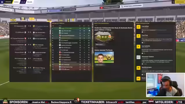 03:52:30Im weiteren Verlauf des Spiels gegen Sparta Rotterdam geht die personelle Notlage weiter. Mit Palberg fällt ein weiterer wichtiger Spieler aus, was die taktische Flexibilität einschränkt. Der Streamer zeigt sich überfordert von der vielen Verletzungen und den dadurch notwendigen Wechseln. Trotzdem gelingt es der Mannschaft durch eine Umstellung und einen ständigen Angriffsdruck, in Führung zu gehen und das Spiel für sich zu entscheiden.