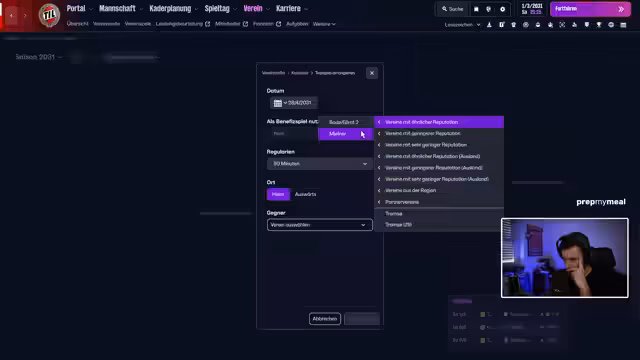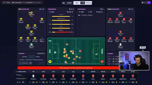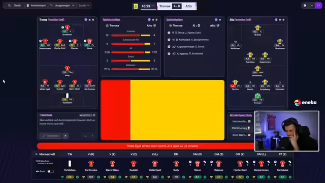 02:38:03Für den Nachmittag plant der Streamer, Linsen-Bolognese zu kochen, um übrig gebliebene rote Linsen zu verwerten. Beim Fußball-Simulations-Game Football Manager 26 läuft die Saison. Das Team startet mit einem beeindruckenden 9:1-Sieg gegen einen Konkurrenten und hält das Momentum im zweiten Ligaspiel. Der Streamer kommentiert das Spielgeschehen, analysiert die Torschützen und freut sich über die überzeugende Leistung seiner Mannschaft, die zwischenzeitlich mit 5:0 in Führung geht.