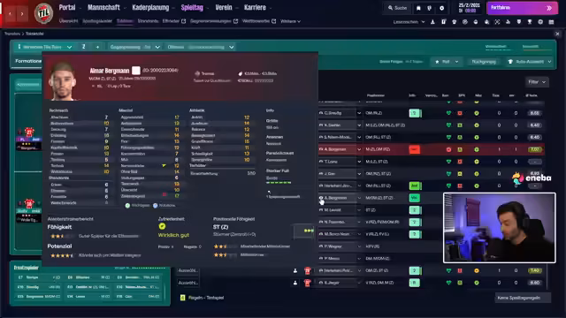 00:35:34Es gibt intensive Diskussionen über die Besetzung der Startformation für das Pokalfinale. Positionen wie rechter Flügel und linke Verteidigung werden hinterfragt und mehrere Spieler werden in Betracht gezogen. Der Streamer zieht Spieler aus, wechselt taktische Einstellungen und simuliert Testspiele. Auch die Trainingsziele für die Nachwuchsmannschaft werden angepasst, um auf die bevorstehende Ligasaison vorzubereiten. Der Fokus liegt darauf, eine optimale und vorbereitet Mannschaft für das wichtige Finale aufzustellen.