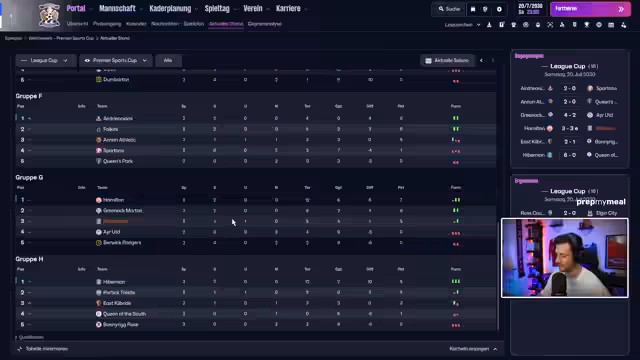 00:22:33Für die Zuschauer, die gestern nicht dabei waren, fasst der Streamer den aktuellen Stand im Vorbereitungsturnier zusammen. Das Team hat gegen Chesterfield 4:3 gewonnen und in der Premier Sports Cup zwei Spiele absolviert. Das erste Spiel gegen Hearts of Middle-Othien wurde mit 2:1 gewonnen, das zweite endete 3:3 nach regulärer Spielzeit, jedoch ging das Team nach Elfmeterschießen als Sieger hervor. Besonders erwähnenswert ist die ungewöhnliche Punktevergabe, bei der ein Sieg nach Elfmeterschießen insgesamt zwei Punkte einbringt, was zu der außergewöhnlichen Bilanz von fünf Punkten aus zwei Spielen führt.