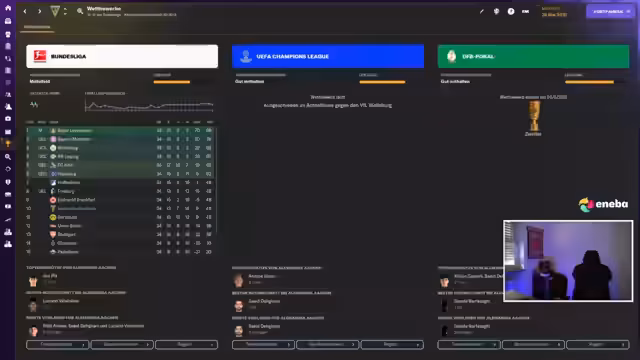 01:49:12Nach der bitteren 1:0-Niederlage im DFB-Pokalfinale in der Verlängerung kündigt der Streamer eine kurze Pause an und bittet die Zuschauer, sich einen frischen Kaffee zu holen. Es wird auf das nun fehlende internationale Wettbewerbsspiel im kommenden Jahr hingewiesen. Gleichzeitig geht es um die nun anstehende Vorbereitung auf die neue Saison, in der das hohe Transferbudget investiert werden muss, um das Team weiter zu stärken.