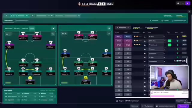 02:35:57Das Heimspiel gegen Celje in der Europa League beginnt sehr dominant mit hohem Ballbesitz und guten Chancen. Trotz eines deut statistischen Vorteils mit 21 Schüssen und 2,04 erwarteten Toren (xG), bleibt das Tor unberührt. Der Streamer betont erneut die katastrophale Chancenverwertung als zentrales Problem, das es zu beheben gilt.