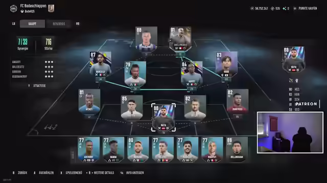 02:25:10Nach dem ersten UFL-Spiel werden neue Sachen freigeschaltet. Es wird überlegt, ob etwas gekauft werden soll. Valiant hatte geschrieben, dass der garantierte Drop einer Karte der höchsten Stufe gut ist. Der Streamer überlegt, sich Alessandro Del Piero zu holen, da er eine Legende ist. Die Adidas Heritage Arena gefällt ihm sehr gut und er beschließt, sie zu kaufen. Del Piero wird für 500 angeboten und als wahrer Leader und Champion beschrieben. Es wird überlegt, ob sich der Kauf lohnt. Der Streamer entscheidet sich für Del Piero und die Adidas Heritage Arena. Anschließend werden die Pakete geöffnet, aber der Inhalt ist nicht besonders gut. Es wird überlegt, die Formation auf 4-4-2 umzustellen, um die beiden Stürmer besser einzusetzen. Die Taktik wird angepasst und es wird ein weiteres Spiel gestartet. Der Fokus liegt darauf, das Team weiter zu verbessern und in UFL erfolgreich zu sein.