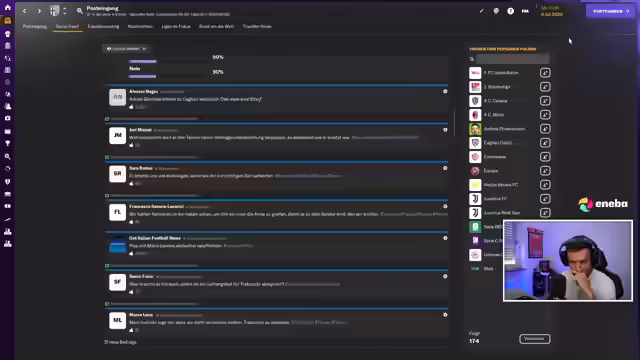 01:31:47Die Verhandlungen um Bernabe gestalten sich schwierig. Es wird überlegt, ob Kamada auf Leihbasis kommen könnte. Parallel dazu gibt es Überlegungen bezüglich eines türkischen Spielers im Hintergrund, dessen Qualitäten unbestritten sind, dem es aber an Schnelligkeit mangelt. Es wird nach einem Stürmer gesucht, der die Bälle einfach nur reinknallt. Ein Leihgeschäft mit Milan wird abgelehnt. Der Fokus liegt auf einem Spieler, der sofort Torgefahr ausstrahlt. Es wird mit dem Trainingsplan begonnen, um die Mannschaft optimal vorzubereiten. Die Suche nach Verstärkungen gestaltet sich intensiv, da man sicherstellen möchte, die Qualität des Kaders zu erhöhen und die sportlichen Ziele zu erreichen. Die Verantwortlichen sind sich der Herausforderungen bewusst und arbeiten daran, die bestmöglichen Lösungen zu finden, um die Mannschaft für die kommende Saison optimal aufzustellen.
