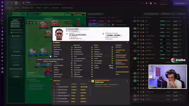 01:37:51Aljosha Kämlein von Union Berlin wurde für die 6er Position geholt, ebenso Tom Rote. Mustafa Hekimoglu von Besiktas ist ein junger türkischer Stürmer. Niklas ist wieder da und Oskar Fraulo von Borussia Mönchengladbach sowie Mio Backhaus als zweiter Keeper. Es gab viele Verkäufe und nun soll auch Bernabe gehen, da sein Vertrag ausläuft und er nicht verlängern will. Bernabe soll noch einmal richtig Kohle bringen, es findet ein gnadenloser Umbruch statt. Es gibt noch keine Angebote für Bernabe. Bergamo bietet 16,25 Millionen, was clever ausgehandelt werden muss. Das Ziel ist es, aus dem Verkauf von Bernabe maximalen Profit zu schlagen, um den Kader weiter zu verstärken und die sportlichen Ziele zu erreichen. Die Verantwortlichen sind sich der Bedeutung dieser Transaktion bewusst und arbeiten daran, die bestmöglichen Konditionen zu erzielen.