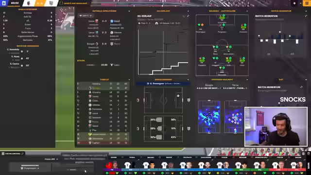 01:42:18Der offizielle Releasetermin für den FM26 ist der 4. November, wobei die Beta voraussichtlich etwa zwei Wochen vorher erscheint. Im Chat werden verschiedene Challenge-Ideen diskutiert, darunter der Start in der Landesliga Deutschland und der Aufstieg in die Bundesliga nur mit afrikanischen Spielern. Es wird erklärt, dass die Beta-Phase dazu dient, Bugs zu finden und das Spiel an eine größere Spielermasse anzupassen. Der Streamer kommentiert das laufende Spiel gegen Milan, lobt die bisherige Leistung und die defensiv solide Taktik mit Fokus auf Konter. Ein weiteres Thema ist die Frage, wie lange Trainer im Spiel durchhalten, wobei Beispiele aus verschiedenen Bundesligavereinen genannt werden. Abschließend wird ein Blick auf die zweite und dritte Liga geworfen, wobei Magdeburg und Energie Cottbus an der Spitze ihrer jeweiligen Ligen stehen.