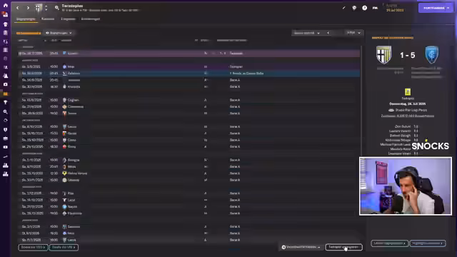03:37:07Der Streamer spricht über Feedback aus dem Chat bezüglich des Gebrauchtwarenmarkts und Autos. Es wird über die rote Karte für Fürth diskutiert und die Schwierigkeit, Stürmer zu finden, die Tore schießen. Der Kader soll weiter ausgedünnt werden, wobei Leihspieler und potenzielle Verkäufe im Fokus stehen. Es wird überlegt, ob man Kohli Sakko verpflichten soll. Ein Testspiel gegen Inter Mailand steht bevor, und der Streamer experimentiert mit der Aufstellung. Es wird über eine mögliche defensive Taktik gesprochen, ähnlich dem Catenaccio. Der Start in die Saison war ein Desaster mit einem 1:5, was zur Überlegung führt, die Taktik zu überdenken. Es wird überlegt, ob man jüngere Spieler verpflichten soll und wie man die Defensive stabilisieren kann.