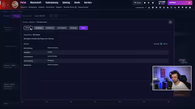 03:18:00Das Testspiel gegen Buddel endet 0:0, obwohl das Team zahlreiche Chancen (2,02 xG) nicht nutzen konnte. Der Streamer kritisiert die mangelnde Effizienz vor dem Tor, ist aber zufrieden mit der grundsätzlichen Leistung und der Tabellenführung. Es werden offensive Wechsel vorgenommen, um frische Kräfte wie Siltanen und Borgesen einzubringen. Die Diskussion zeigt die Herausforderung, Chancen in Tore umzuwandeln, während langfristig an der Stabilisierung der Defensive gearbeitet wird, um weniger Gegentore zu kassieren.
