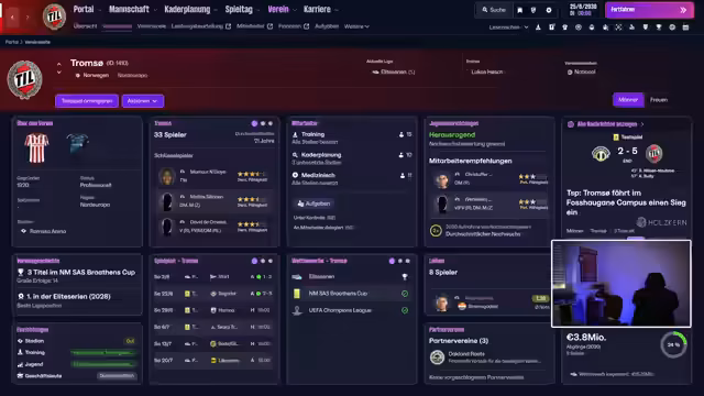 01:41:44Der Streamer kämpft mit gesundheitlichen Problemen, ist aber zuversichtlich bezüglich einer baldigen Besserung und plant, Ingwer als Hausmittel einzusetzen. Der Fokus liegt auf dem anstehenden Spiel, das gewonnen werden muss, um als Tabellenführer in die Sommerpause zu gehen. Es wird berichtet, dass Rosenborg und Renga aktuell führen, was den Druck auf das eigene Team erhöht. Die Diskussion dreht sich um Spielerleistungen und die strategische Ausrichtung für die kommenden Spieltage, wobei die Hoffnung auf einen Sieg und den Verbleib an der Tabellenspitze deutlich wird.