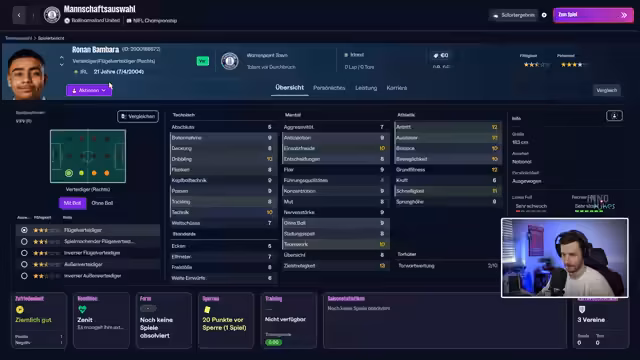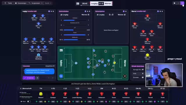 02:14:18Der Fokus verlagert sich auf das anstehende Pokalspiel gegen Crew United, das als Favoritenrolle gesehen wird. Gleichzeitig wird die Suche nach einem Partnerverein weitergeführt. Der Streamer äußert seine Frustration über die fehlenden Scouting-Möglichkeiten und diskutiert potenzielle Kadermitglieder. Er zeigt sich enttäuscht von den Leistungen der Mannschaft im Pokal, als man trotz einer dominanten Spielzeit (1,39 xG) ausscheidet.