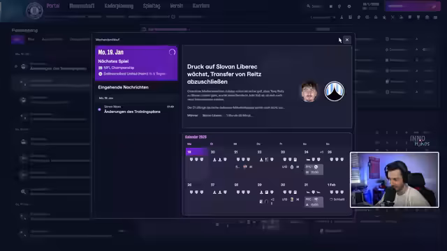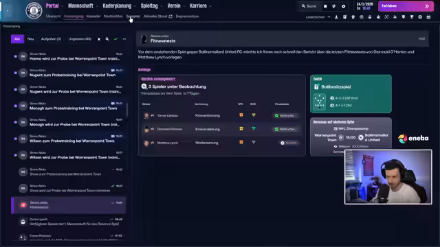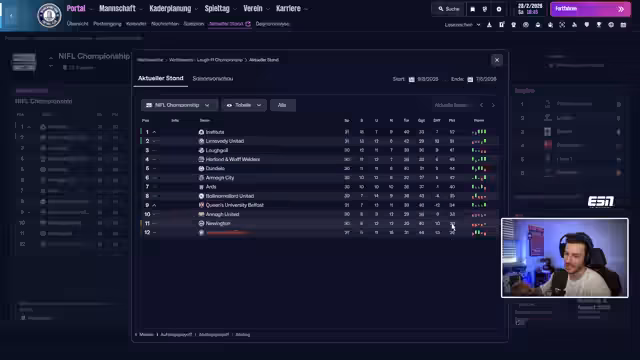 01:25:49Der Blick richtet sich auf das nächste Spiel gegen den Tabellenführer Limmerwady United. Der Streamer berichtet von seiner persönlichen Lebenssituation, wie den anstehenden Besuch bei seiner Tochter und seinen täglichen Stream-Plan ab 10 Uhr. Er spricht über seine Studienfächer wie Finanz und Wirtschaftspädagogik und zeigt sich unzufrieden mit der Vereinsführung und den finanziellen Rahmenbedingungen, die ambitionierte Transfers unmöglich machen.