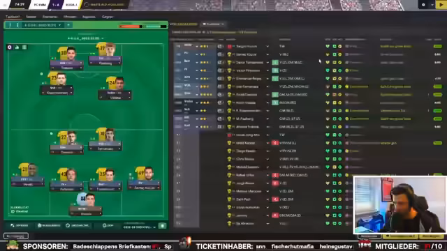 02:09:45Der Fokus verschiebt sich auf das anstehende Champions-League-Spiel gegen den FC Fiorentina. Der Streamer geht auf die taktische Aufstellung ein, bei der Ivan Fernandes aufgrund laufender Verhandlungen nicht mitgenommen wird. Er äußert seine Freude über den Kader, aus dem man qualitativ wechseln kann, ohne sportlich etwas einbüßen zu müssen. Das Spiel im Sportpark Karl Heide beginnt bei winterlichen Bedingungen auf einem leicht verschneuten Rasen, und es wird auf das hohe Potenzial der Offensivspieler Arita und Kovacevic verwiesen.