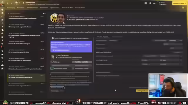 01:55:26Das Gespräch konzentriert sich auf sportliche Transfers und personelle Planungen. Es wird über den Verkauf des Spielers Husum nachgedacht, der jedoch aufgrund einer hohen prozentualen Beteiligung des Vereins am Verkaufserlös abgelehnt wird. Spieler wie Ivan Fernandes, der von Chelsea umworben wird, und Marques, den man grundsätzlich verkaufen würde, sind ebenfalls Themen. Der Streamer betont die große finanzielle Stärke des Vereins und die Freiheit, die daraus resultiert, Entscheidungen ohne finanzielle Zwänge zu treffen.