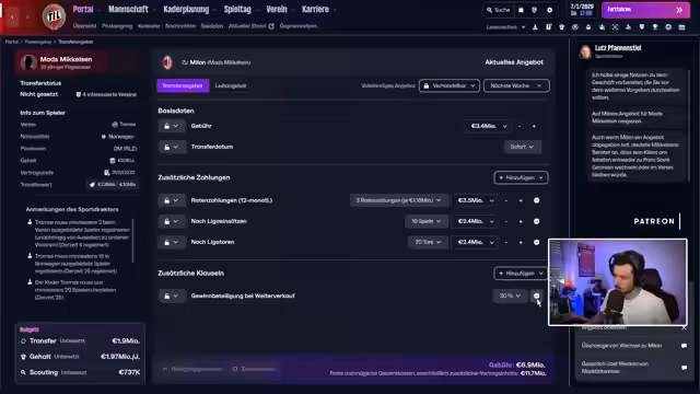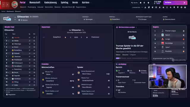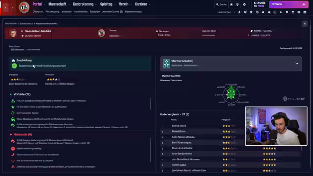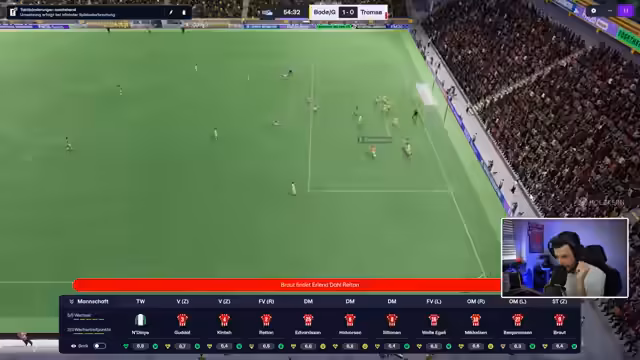 00:50:18Während des Spiels gegen Brandenbergen wird ein verdienter 2:0-Sieg durch Tore von Modebe gefeiert, der einen neuen Punkterekord (70+) besiegelt. Einwechselungen von Spielern wie Siltanen und Söderle stabilisieren das Ergebnis. Gleichzeitig plant der Streamer den Wintertransfer: Er erwähnt die Schwierigkeit, bei Abgängen gleichwertige Ersätze zu finden, besonders wegen der Winterpause und internationaler Registrierungsfristen. Ein kritisches Thema ist die fehlende Funktion zur Wahl eines Partnervereins in FM26 – diese Entscheidung traf früher der Vorstand. Der Stream endet mit einer Wette auf das anstehende Derby gegen Bodo/Glimt und dem Ausblick auf das letzte Heimspiel, wo möglicherweise der Pokal überreicht wird. Die Stimmung ist optimistisch, trotz anstehender Urlaubsplanung.