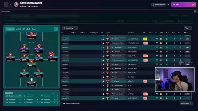 00:14:31Der Streamer analysiert das 2:2-Unentschieden im Derby detailliert: Die erste Halbzeit war langweilig, doch in der zweiten führte die Mannschaft zweimal, kassierte aber auswärts den Ausgleich. Lob gibt es für Torhüter Jan Reichert, der als 'künftiger Welttorhüter' gefeiert wird. Jugendspieler werden thematisiert, wobei einer nach Paris verkauft wird. Es folgen intensive Taktikgespräche: Das bestehende System soll weiterentwickelt werden, um die Stärken des Kaders zu nutzen. Insbesondere im Mittelfeld (Siltanen, Edwardson) fehlt eine 'weite Sechser'-Rolle; stattdessen wird ein offensives 4-3-3 mit weit vorgerückten Außenverteidigern diskutiert. Risiken bei Ballverlusten werden nicht ignoriert, aber die Offensive als vielversprechend bewertet.