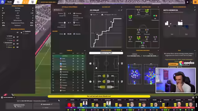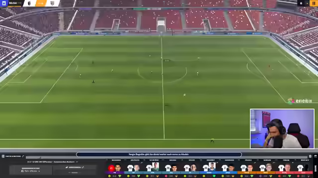 02:23:31Nach einem Business Call kehrt der Streamer zurück und betont die Wichtigkeit von Konzentration. Es wird kurz über die Aufstellung und Taktik gesprochen, wobei der Fokus auf frühem Pressing liegt. Es wird erwähnt, dass die parmizianische Mafia angerufen hat, was als Witz dargestellt wird. In der 64. Minute steht es immer noch unentschieden gegen Bologna. Es wird bedauert, dass die Offensive nicht mehr so durchschlagskräftig ist, obwohl man eigentlich vier Punkte aus den letzten zwei Spielen holen wollte. Der Streamer kommentiert später das Spiel des 1. FC Nürnberg. Es wird überlegt, was mit der Personalie Suzuki geschehen soll. Der Streamer betont, dass man sich auch mit einem Unentschieden viel holen kann und konzentriert sich auf die aktuelle Spielsituation. Backhaus spielt einen langen Ball, der jedoch nicht zum Erfolg führt. Es wird die Frage aufgeworfen, wie lange die Freistoßvariante geübt wurde. Der Streamer äußert Frustration über den Spielverlauf und fragt sich, wie man einen Turnaround schaffen kann.
