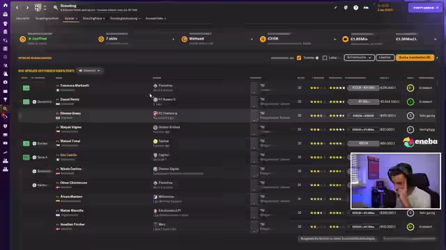 01:40:49Der Streamer begrüßt einen Zuschauer und hofft, dass es ihm gut geht. Er erwähnt, dass er morgen wieder da ist. Der Parma-Vorstand entscheidet, ob er morgen wieder da ist. Der Top Rider hat eine Wette aufgemacht, wie viele Punkte bis zum Ende des Ultimatums geholt werden. Der Streamer hat eine Wette gewonnen und 10 Free Subs besorgt. Er schließt eine Entlassung nicht aus. Der Streamer lobt den Top Rider und die anderen Mods. Das Ultimatum geht bis Januar. Der Streamer ist im Fanradio zu hören. Es ist der 31.12. und der Streamer fragt, ob die Subs von Fritzi kommen. Der kleine AFC Wimbledon holt einen Punkt gegen Arsenal. Der Streamer hat einen 4-0-Sieg für den Klub vorhergesagt. Das Ultimatum ist eine Jobgarantie bis zum Ablauf der Frist. Es muss besser werden. Neun Punkte könnten reichen. Bologna ist wichtig, weil sie runtergezogen werden können. Bologna und Cesena sind die Mannschaften, die gepackt werden können. Der Streamer war entweder am 18. oder am 17. Platz in der Tabelle beim Ultimatum. Der Vorstand ist begeistert über die Verbesserung der Leistungen. Der Streamer bedankt sich für ein Follow. Der Vorstand ist nahezu begeistert. Es gibt ein Angebot für Suzuki. Der Streamer will einen Kipper von dem Geld holen, der sofort funktioniert. Er schaut, wer gelistet wäre. Er will keinen englischen Keeper holen. Suzuki war nicht unumstritten. Es wäre eine gute Möglichkeit, ihn zu verkaufen. Der Streamer schaut nach anderen Keepern. Smarty ist selten im Stream. Der Streamer schaut nach Potenzial. Ein Spieler hat um Freigabe gebeten. Er ist ein guter Spieler für die Serie A. Der Streamer schaut sich die Werte an. Er will wissen, ob er den Verein so krass weiterbringt. Der Vertrag eines Spielers würde auslaufen. Der Streamer müsste Kohle investieren. Er fragt, ob er direkt funktioniert. Der Streamer wird angerufen. Er grüßt den Anrufer. Er schaut nach vereinslosen Spielern. Der Streamer macht einen Auftrag. Er schaut nach Analysten und Scouts. Er schaut nach Spielern, die mindestens 1,90 Meter groß sind. Der Streamer schaut sich Spieler an und fragt den Sportdirektor. Er entfernt Spieler. Der Streamer grüßt. Er war in Regensburg für ein neues Projekt. Er kann noch nicht viel dazu sagen, außer, dass es mit Ohren zu tun hat. Es gibt im Ende Oktober, Anfang November die ersten Informationen. Der Streamer mag nicht nach Liga einsetzen. Er braucht die Kohle, wenn jetzt. Er fängt mit 12 Millionen an. Es sind immer noch die Saudis. Der Streamer schaut, ob Suzuki sich beschwert. Er steht neuerdings auf Füße. Der Streamer kann ein Bild nicht zeigen. Der Streamer zeigt potenziellen Verhandlungen. Ein Spieler will viel Geld. Ein anderer Spieler will wenig Geld. Der Streamer schaut sich Suzuki nochmal an. Er ist jetzt schon unterwegs. Er hat in dieser Saison in 17 Spielen 36 Gegentore kassiert. Er war kein Spieler des Spiels. Er ist kein Keeper, der Spiele rettet. Der Streamer hat keinen anderen Keeper mehr. Die sind auch noch verletzt. Der Streamer schaut sich die Gegner an.
