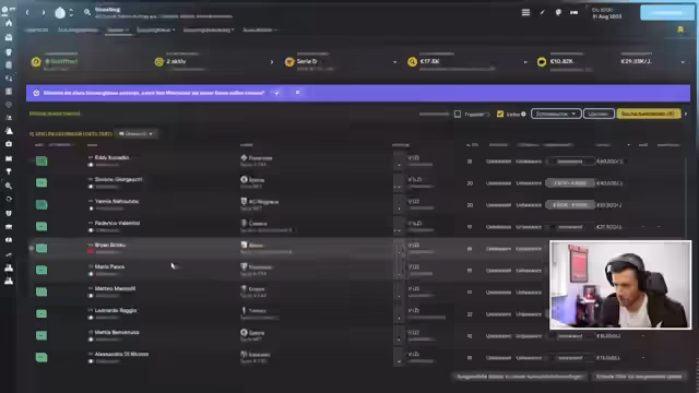 01:36:45Nach dem ersten Testspiel konzentriert sich der Streamer auf den Transfermarkt. Es fehlt dringend eine Innenverteidigerin, da das aktuelle Team in dieser Position schwach ist. Er beginnt intensiv zu scannen und versucht, passende Talente für wenig Geld zu finden, besonders aus der Serie B und C. Die Suche gestaltet sich schwierig, da die meisten verfügbaren Spieler entweder zu teuer oder nicht leihfähig sind.