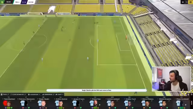 01:11:13Die Kaderplanung wird abgeschlossen. Überzählige Spieler werden auf die Transferliste gesetzt, um den Kader zu verkleinern. Prämien für die Spieler werden bewusst gering gehalten, um zu sparen. Das Startelfdebüt von Guido Baldi als Stürmer wird angekündigt. Die Stimmung ist geprägt von Vorfreude auf den Save und die anstehenden Partien.