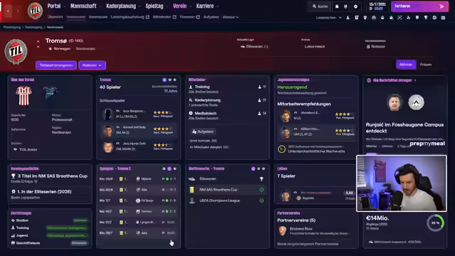 00:15:31Der Streamer geht auf die genauen Details des geplanten 24-Stunden-Livestreams ein. Es ist beschlossene Sache, der Deal ist sealed. Er diskutiert die Herausforderung, 24 Stunden ohne Schlaf durchzuhalten, und überlegt, ob ein Powernap am Tag vorher hilfreich wäre. Ein zentrales Thema ist die Frage, ob dies die letzte gemeinsam gespielte Football Manager-Saison sein könnte, da nach dieser Saison wahrscheinlich ein neuer Save starten wird. Der Stream deutet an, dass die aktuelle Saison mit dem Verein Tromsö voraussichtlich enden könnte.