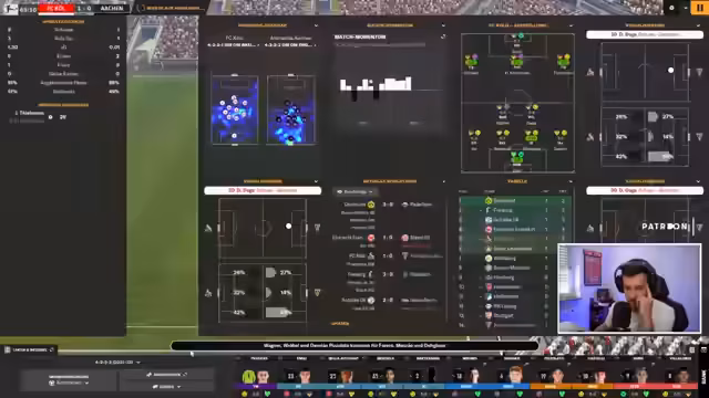 02:55:22Das Auftaktspiel gegen Barockstadt wird im Schnelldurchlauf gezeigt und mit einem ungefährdeten 4:1-Sieg beendet. Dieses Spiel dient als Test für die neue Mannschaft. Gleichzeitig laufen die Bemühungen um einen letzten, entscheidenden Transfer weiter: Nathaniel Brown. Ein Kandidat für die linke Verteidigerposition, dessen Verpflichtung aber scheitert, weil das Transferbudget erschöpft ist. Stattdessen wird der Kader mit Spielern wie Emily und Rogelio Silva komplettiert. Der Streamer zeigt sich unzufrieden mit der Leistung im ersten Ligaspiel gegen Frankfurt, das trotz Heimvorteit nur unentschieden endet und als nicht überzeugend bewertet wird.