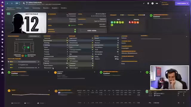 01:56:56Der Stream beginnt mit einer Diskussion über den potenziellen Transfer des Spielers Sidney Räbiger. Der Streamer stellt klar, dass er den Spieler nicht in jeder Karriere erneut holen möchte, da dies zu repetitiv wäre. Anschließend geht es um die Vertragsverlängerungen: Putaro erhält einen neuen Zwei-Jahres-Vertrag, während Porat der Annahme eines Angebots zustimmt. Die Gehaltsforderungen bei Odogo werden als machbar eingestuft, während die Verpflichtung von Benedetto als zu sehr ein Meme abgetan wird.
