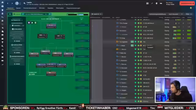 00:39:31Der Streamer analysiert die Ausgangssituation für die Challenge. Mit vier Punkten Rückstand auf Relegationsplatz und elf auf den direkten Klassenerhalt ist die Aufgabe enorm. Die restlichen Gegner wie Leipzig, Gladbach, Augsburg, Freiburg und Dortmund sind allesamt anspruchsvoll. Kiel wird in Real-life mit einer defensiven 5-3-2 Formation gespielt. Der Streamer entscheidet sich für eine offensivere Fünferkette mit einem vorgeschobenen Spielmacher, um den Sturm zu stärken und die Abwehr zu entlasten. Die Analyse des Kieler Kaders beginnt, wobei Spieler wie Sander, Skripski, Weiner und Pichler als Schlüsselspieler identifiziert werden. Ein Problem ist das Fehlen von Flügelspielern und die langsame Abwehrreihe.