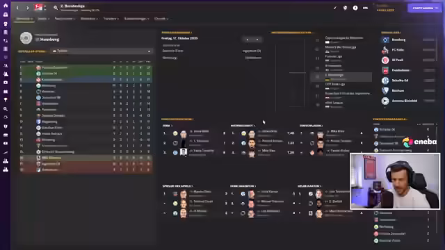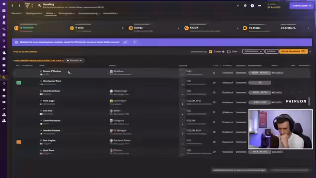 01:49:35Nach der zweiten Niederlage in Folge erfolgt eine kritische Analyse der Leistung und der Teamdynamik. Der Streamer äußert den Verdacht, dass das Team gegen seine eigenen Taktiken spielt. Die Suche nach einem neuen Innenverteidiger wird fortgesetzt, wobei der Fokus auf einem starken, physischen Spieler liegt. Auch die Weiterentwicklung der Spieler, wie Castell, wird besprochen, und es werden weitere Scouting-Optionen in Betracht gezogen.