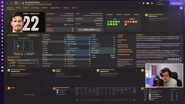 01:51:42Ein Hauptfokus des Streams liegt auf der Analyse und dem Management im Fußball-Simulator Football Manager. Der Streamer bespricht ausführlich die Kaderzusammenstellung, potenzielle Transferziele wie 'Gürlejen' und 'Voltemade', sowie die taktische Ausrichtung der Mannschaft. Es werden Spielerbewertungen analysiert und die strategische Planung für die anstehenden Spiele vorgenommen. Besonders die Verpflichtung neuer Spieler und die damit verbundenen strategischen Vorteile werden eingehend erörtert.