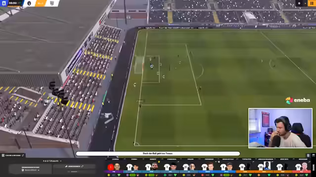 02:45:41Der Fokus des Streams liegt auf dem Liveticker des Pokalspiels. Nach einem frühen Tor wird eine rote Karte für Alexander Lindh erwähnt, was die Situation für Parma kompliziert. Der Streamer kritisiert ein Abseits von Trissoldi scharf und äußert den Wunsch, im FM26 die Abseitsfalle auch offensiv trainieren zu können. Trotz dieser Rückschläge gewinnt Parma das Spiel mit 1:0 und geht in die nächste Pokalrunde, ohne Gegentor geblieben zu sein.