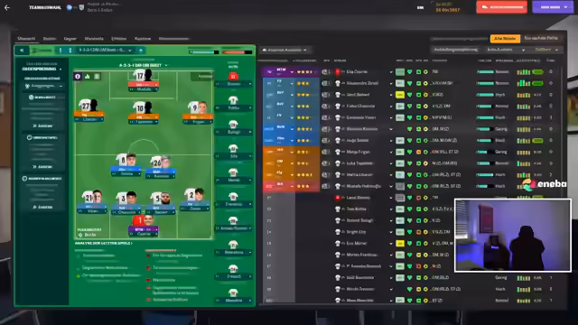 00:32:12Unmittelbar vor dem Start des Spiels gegen Lazio zeigt der Streamer seine Aufstellung und taktische Überlegungen. Er äußert sich über Verletzungen, wie bei Zanoli, und muss improvisieren, indem er Rote auf der rechten Seite spielen lässt. Er erwähnt eine Wette für die zweite Halbzeit und betont den Willen, das Spiel gewinnen zu müssen, um als Trainer im Amt zu bleiben.