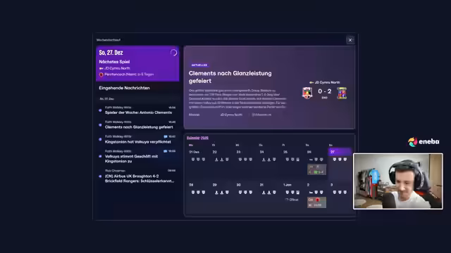 02:26:40Immer noch von der Erkrankung gezeichnet, kommentiert der Streamer große Transfers im Fußball, wie den Wechsel von Cole Palmer zu Bayern München für 102 Millionen. Er ist verwundert und leicht schockiert von den Dimensionen. Bei seinem eigenen Verein, Airbus, geht es sportlich weiter: Man ist im Pokal weitergekommen und befindet sich in guter Verfassung mit zehn Spielen ohne Niederlage, was den Aufstiegsambitionen Auftrieb gibt.