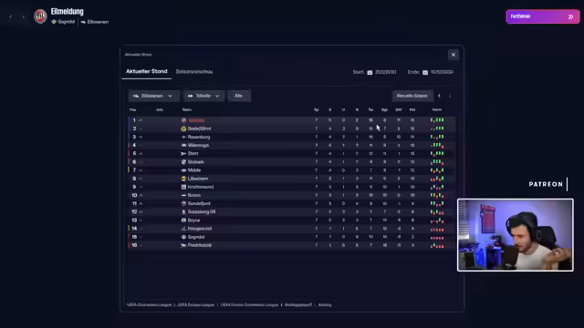 02:55:46Der Streamer erörtert die aktuelle Tabellensituation mit vier Vereinen bei sieben Punkten und Friedrichsland ohne Punkte. Das nächste Spiel gegen Haugesund wird als must-win beschrieben. Neben der Transferstrategie für die Sommerpause wird der Ausbau der Trainingseinrichtungen hervorgehoben, wobei ein Spieler verletzungsbedingt für drei bis vier Wochen ausfällt. Die Festverpflichtung von Garden wird als schwierig eingestuft, während die Jugendentwicklung und offensive Spielweise betont werden. Als machbare Gegner werden neben Haugesund auch Brand, Stabek und Sockendall genannt.