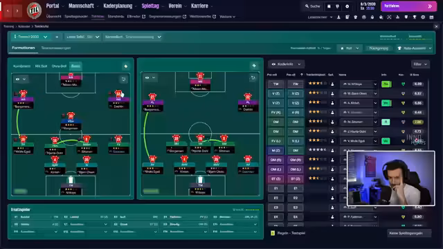 00:36:59Im Football Manager 2026 widmet sich der Streamer der taktischen Feineinstellung für die neue Saison. Er erstellt mehrere Strategien wie 'Ballbesitz zentral' und 'Ballbesitz off Flügel', passt individuelle Anweisungen für Spieler an (z.B. Dribbling-Raten, Passing-Optionen) und legt Trainings schwerpunkte auf offensive Laufwege und Torschüsse. Dabei diskutiert er die Vor- und Nachteile verschiedener Formationen und Spielerrollen, insbesondere für Schlüsselpositionen wie den defensiven Mittelfeldspieler.