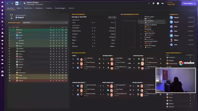 00:24:35Der Streamer analysiert den aktuellen Stand des Parma-Saves im Detail. Trotz einer schwachen Offensive ist die Defensive mit 39 Gegentoren nach 28 Spielen überraschend stabil, was zu einem komfortabren Vorsprung auf den Relegationsplatz führt. Nach einer erfolgreichen Transferphase im Winter wird nun der Scouting-Prozess intensiviert, um gezielt neue Talente, insbesondere einen Stürmerstar aus Japan, zu finden.
