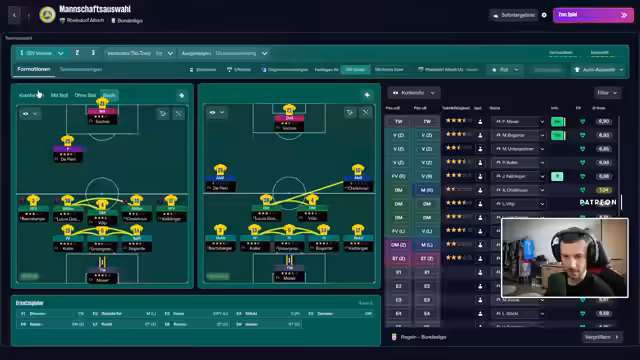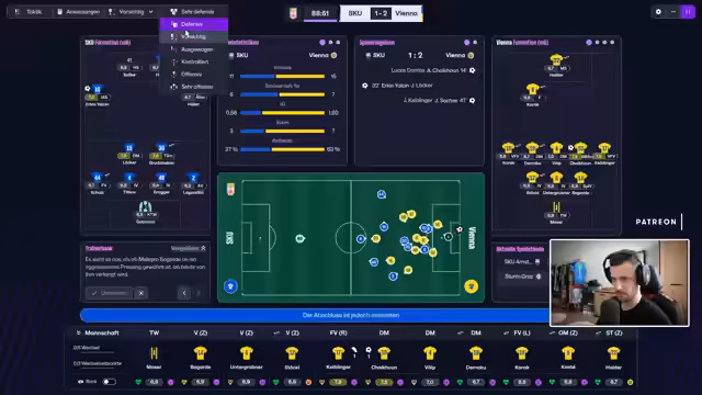 02:42:05Das Fußball-Simulationsspiel erreicht einen kritischen Punkt. Das Team spielt gegen Blau-Weiß-Linz, um den ersten Platz in der Aufstiegsgruppe zu sichern. Nach einem 1:1-Unentschieden und unter Zuhilfenahme eines späten Tores von Di Pieri wird das Spiel mit 1:1 abgeschlossen. Dies qualifiziert das Team für die Playoffs um einen internationalen Startplatz, der nun durch ein Hin- und Rückspiel gegen den Fünften der Meistergruppe entschieden wird. Die anstehenden Spiele sind für die Saison von entscheidender Bedeutung.