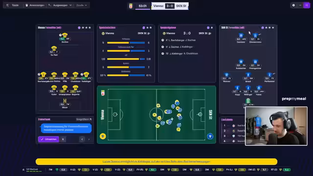 01:19:13Zwischen den Spielereinsätzen wird eine persönliche Anekdote über den Vater des Streamers geteilt, der als großer Kakaotrinker bezeichnet wird. Anschließend wendet sich der Streamer der Planung für die Zukunft zu. Er überlegt, welche erweiterte er noch ins Team holen kann, wie den jungen Simon oder den Stöckel. Er blickt auf ein erfolgreiches Spiel mit einem 3:0 gegen St. Pölten und wechselt einige Spieler, um Kräfte zu schonen. Eine Nachricht von einem Zuschauer, der eine Prüfung bestanden hat, sorgt für positive Stimmung.
