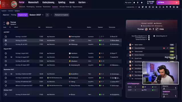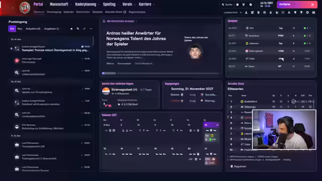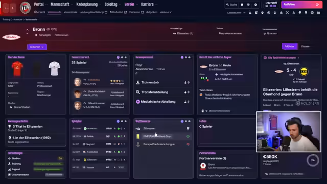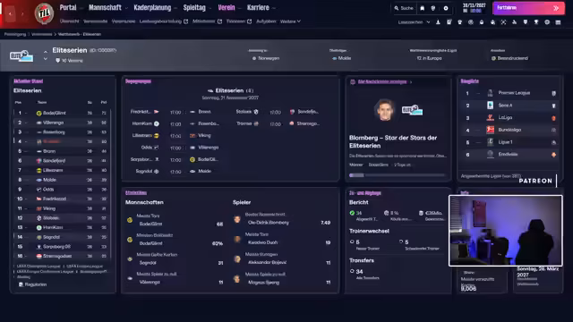 00:12:30Der Streamer begrüßt die Zuschauer am 29. November 2025 zu einem weiteren Samstagmorgen-Stream. Es steht das große Saisonfinale in Norwegen an. Das Team befindet sich nach 26 Spielen und 44 Punkten auf Rang 4, mit dem Ziel, den 2. oder 3. Platz zu erreichen, um sich für das internationale Geschäft zu qualifizieren. Der Vorstand hat das obere Tabellenmittelfeld als Ziel gesetzt, während das persönliche Ziel des Streamers die Top 4 sind. Die Mannschaft hat eine gute Serie am Laufen, obwohl es noch zu viele Unentschieden gab. Die Meisterschaft ist außer Reichweite, da der Spitzenreiter Bodø/Glimt ungeschlagen ist und finanziell weit überlegen scheint. Der Streamer plant, sich heute auf das Beenden der Liga-Saison zu konzentrieren, um die endgültige Platzierung und die damit verbundenen Qualifikationen zu klären. Das Scouting-Thema könnte später angegangen werden.