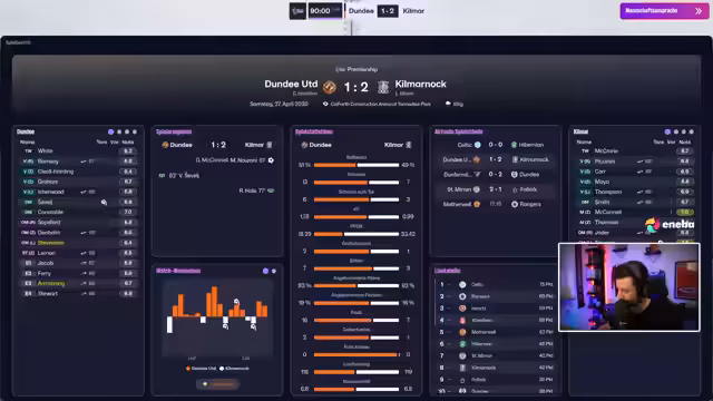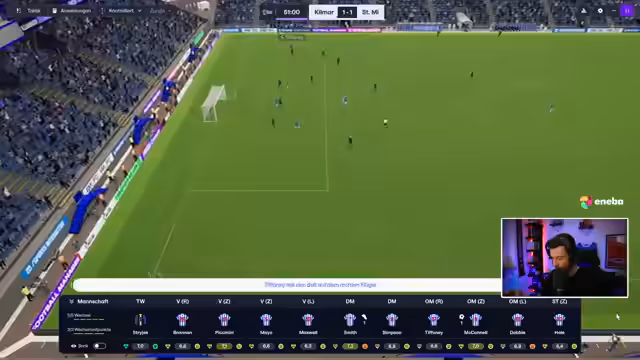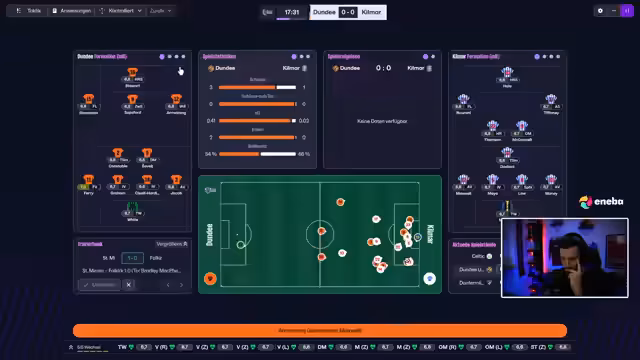 00:41:42Für die verbleibenden Spiele wird eine neue taktische Ausrichtung getestet. Das Ziel ist, gegen schwächere Mannschaften und zu Hause vertikales Tiki-Taga mit viel Ballbesitz zu spielen, während gegen bessere Teams auf dynamisches Kontern umgestellt wird. Das aktuelle Spiel gegen Dunfermline wird genutzt, um diese Taktik umzusetzen und zu evaluieren. Der Streamer analysiert das Spielgeschehen kritisch und stellt fest, dass trotz eines frühen Tores das Spiel kaum Torchancen hergibt.