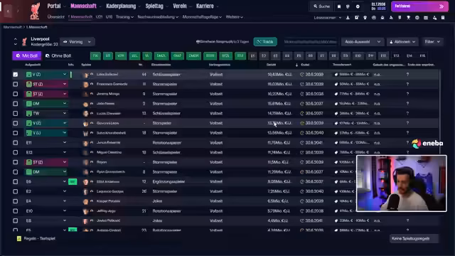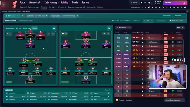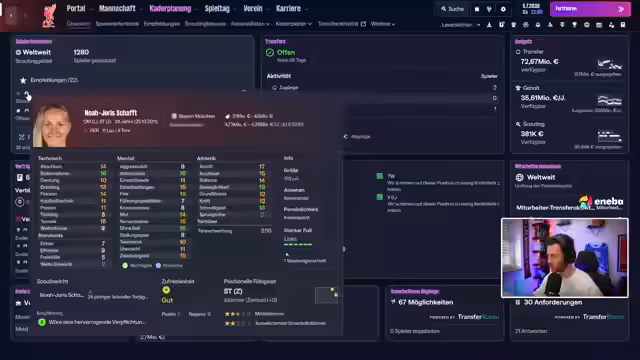 02:50:08Der Streamer beginnt mit Überlegungen zur Trainerkarriere und erwähnt den Ersten FC Nürnberg-Co-Trainer aus dem Jahr 1921. Anschließend widmet er sich intensiv der Transferplanung seiner Mannschaft. Er diskutiert verschiedene Spieleroptionen, darunter Nevesh für die 10er-Position und Würz als mögliche Backup-Lösung. Besonders im Fokus steht Franco Mastantuno von Leverkusen mit einer hohen Ausstiegsklausel von 56 Millionen Euro, den er jedoch als zu teuer für eine Backup-Rolle ansieht.