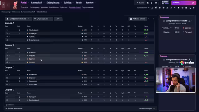 01:27:23Im Stream geht es um die Kaderplanung für die Saison #11. Der Streamer spricht über das Budget und erwägt, einen kroatischen Spieler zu holen. Martin Klevers Vertrag läuft aus, was Druck auf ihn ausübt. Man plant den Kauf eines geistkranken Stürmers namens Enfield Roth, der als Zielspieler agieren soll. Es werden Prämien und Ablöfebeträge diskutiert, die den Gesamtpreis auf bis zu 134 Millionen Euro treiben könnten. Das Ziel ist, konkurrenzfähig zu bleiben und Titel im Thüringer Landespokal zu gewinnen.